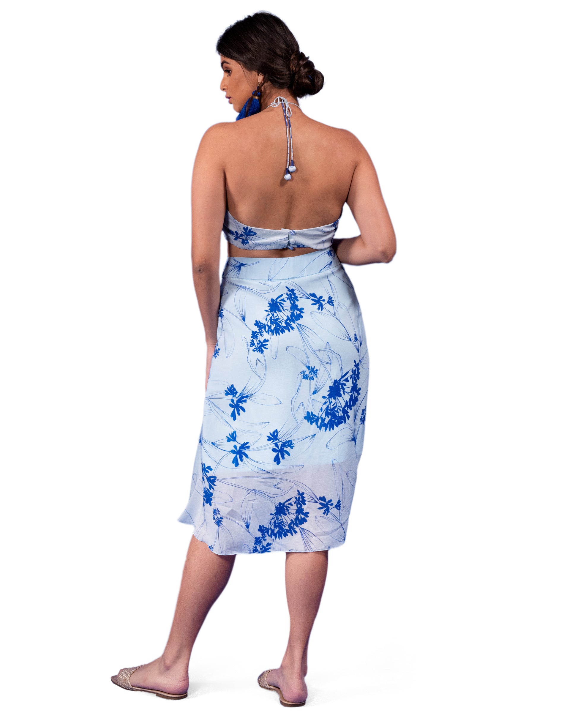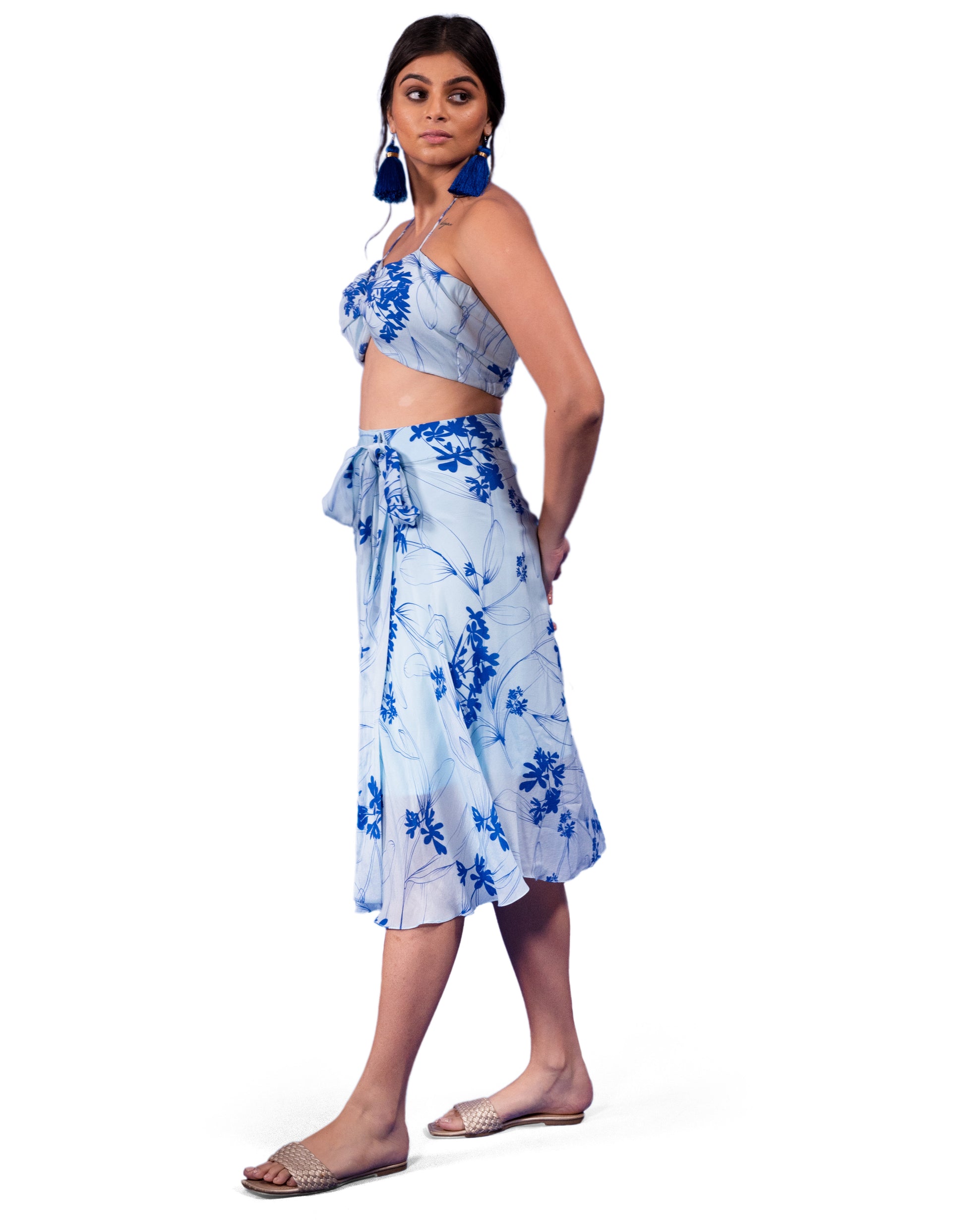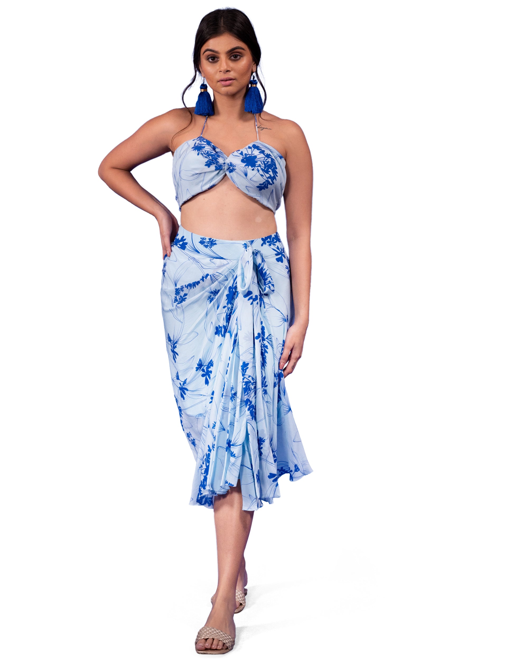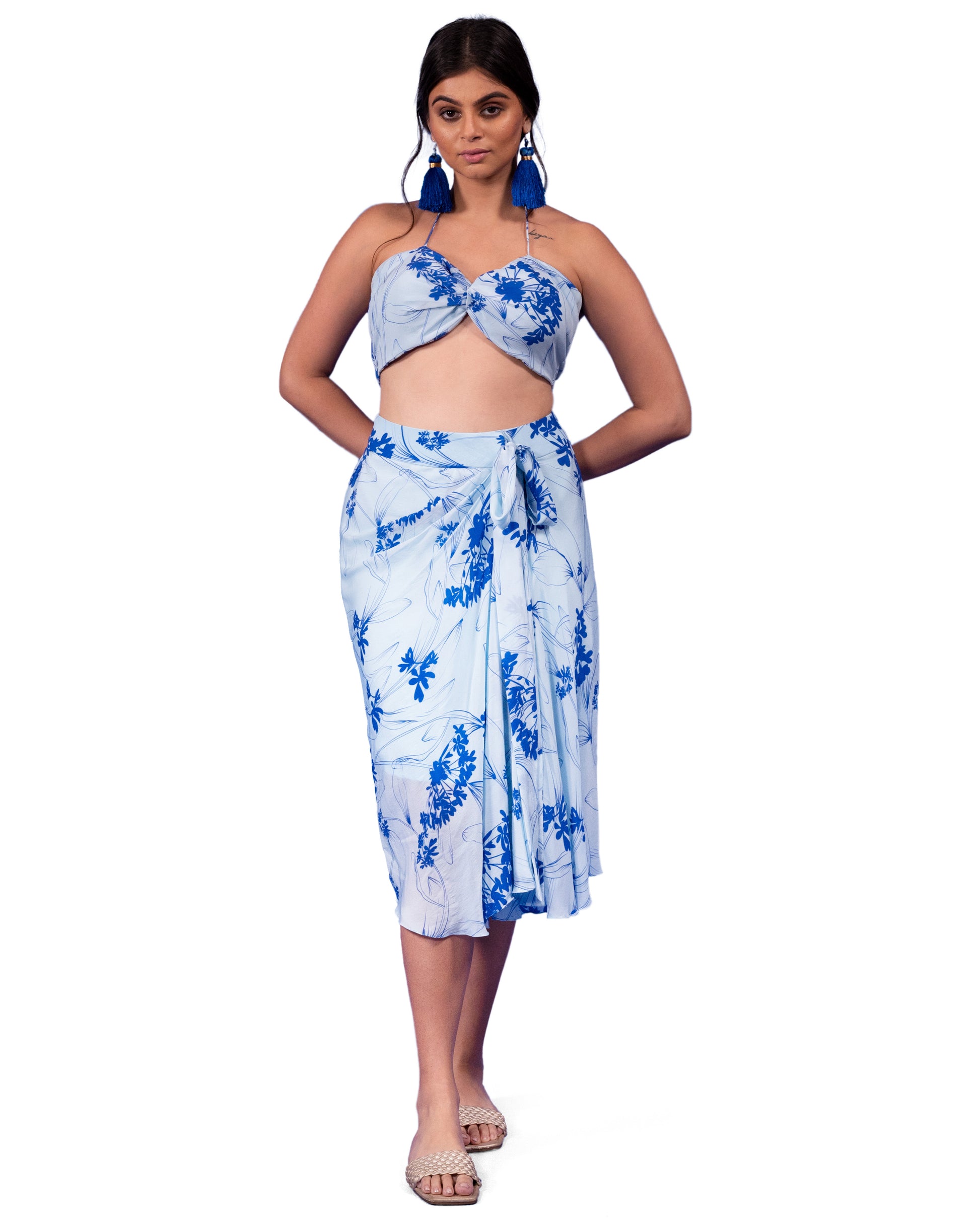FLORAL PRINTED BIKINI TOP AND DRAPED SKIRT