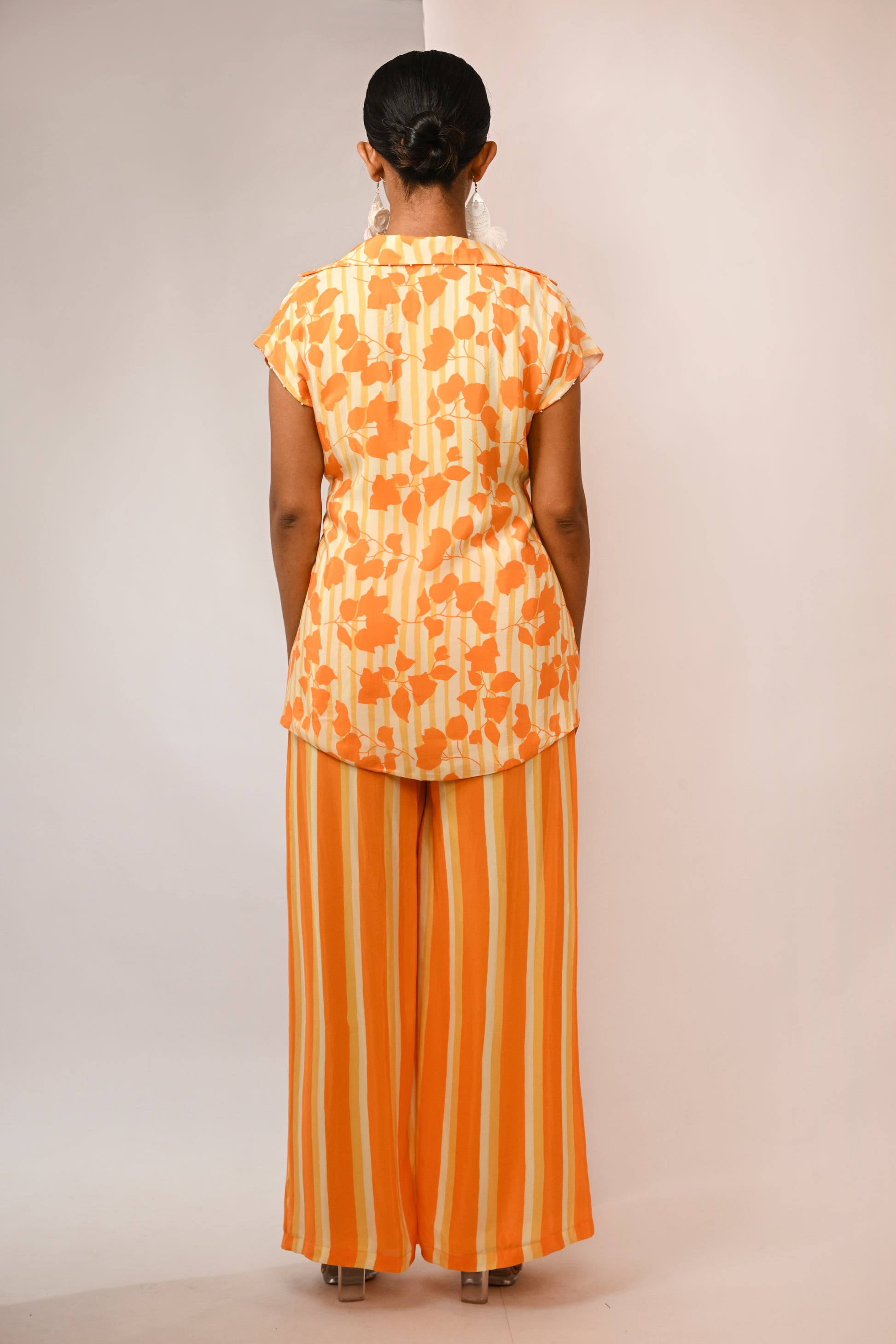 Orange bougainvillea printed blazer with pearl embroidery detail