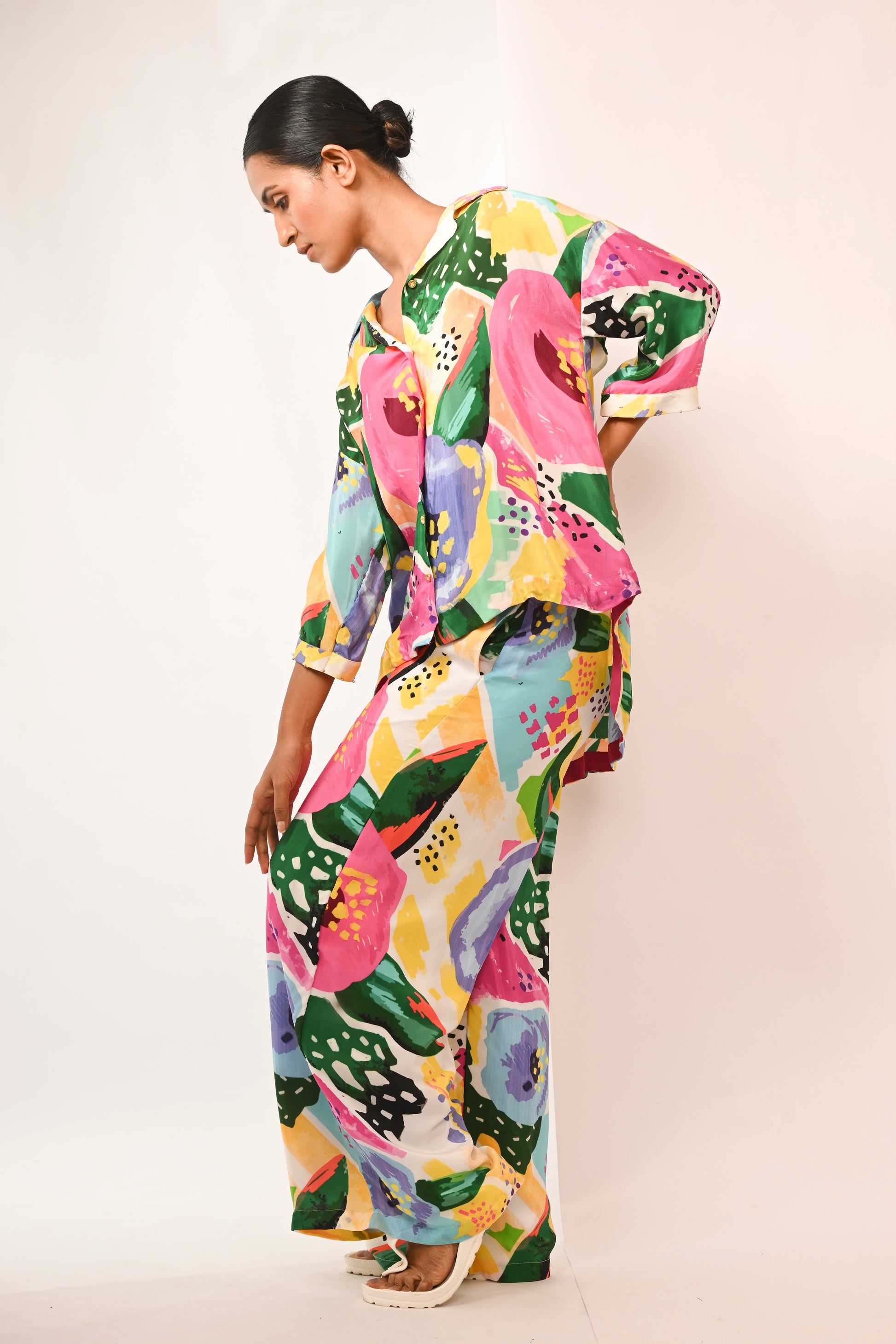 White base watersplash floral printed shirt