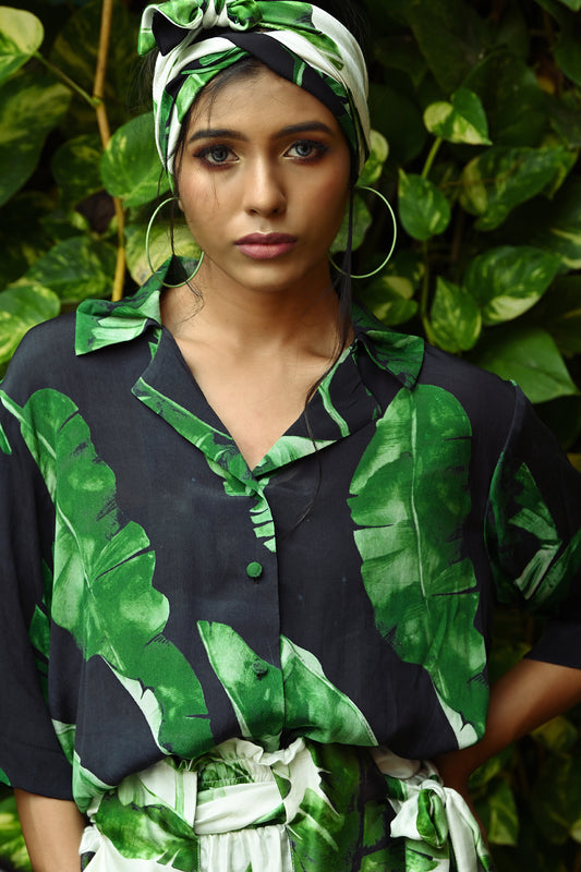 BANANA LEAF PRINTED SHORTS AND SHIRT COORD SET