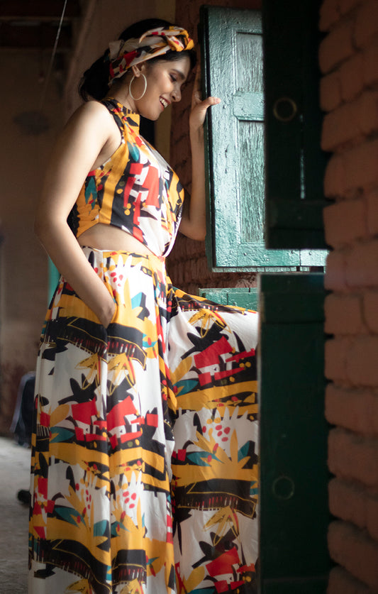 ABSTRACT GRAPHIC FLORAL PRINTED SKIRT AND TOP
