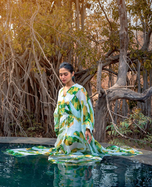 LAXMI MANCHU IN TROPICAL FLOWER PRINTED KAFTAN