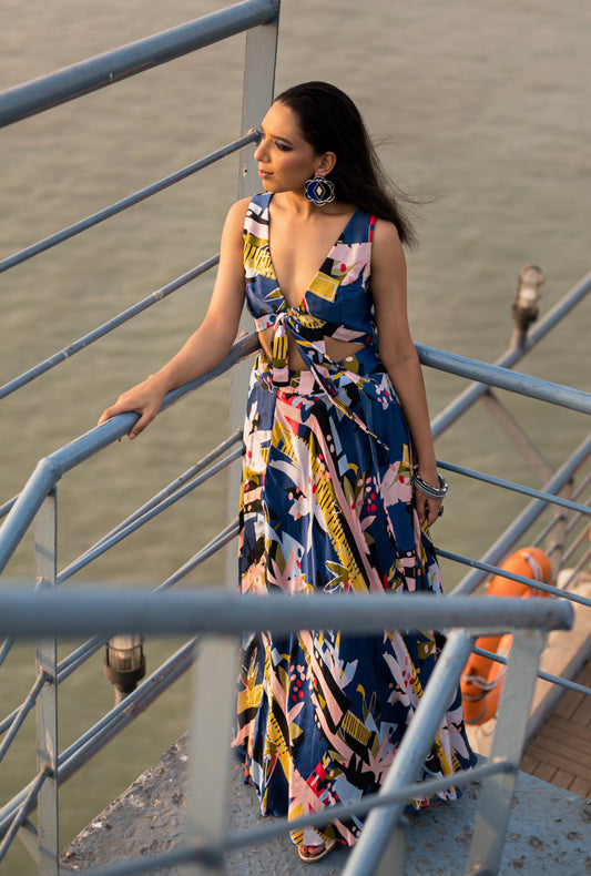 ABSTRACT GRAPHIC FLORAL PRINTED GOWN
