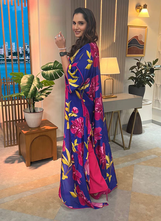 SANIA MIRZA IN PINK COORD SET TEAMED WITH CHRYSANTHEMUM PRINTED OVERLAY