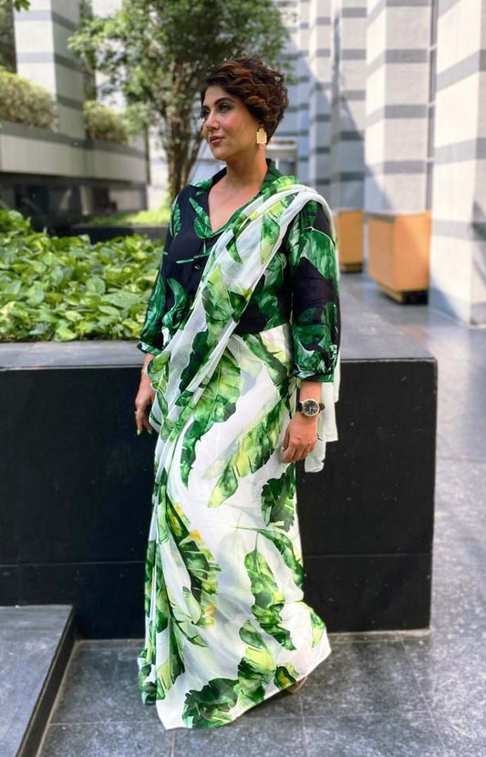 SWASTIKA MUKHERJEE IN BANANA LEAF PRINTED SAREE WITH SHIRT BLOUSE